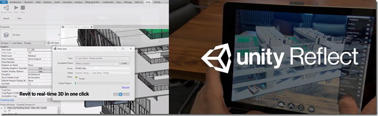 Unity firması, yeni ürünü Unity Reflect ile Gerçek zamanlı BIM işbirliğini hedefliyor. Unity Reflect sadece fotogerçekçi ortamlar oluşturulmasını değil, daha çok işbirliği için Revit’ten akıllı veriler elde etmeyi hedefliyor. Unity Reflect ile Revit’te yapılan tasarım değişikliklerinin, mobil ya da masaüstü cihazlarda, sanal gerçeklik ya da artırılmış gerçeklik çalışmalarında gerçek zamanlı olarak senkronize olmasını hedefliyor. Konunun takipçileri tarafından merakla beklenen yazılımın ancak 2019 yılsonuna yetiştirilmesi bekleniyor.