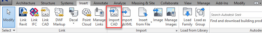 - Insert sekmesinden Import CAD komutu kullanılır.