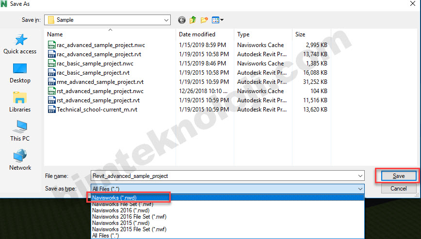 - Dosya .NWD uzantısı seçilerek kaydedilir.