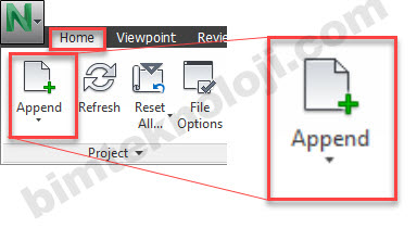 - Navisworks’e proje eklemek için, Home sekmesinde yer alan Append komutu seçilir.
