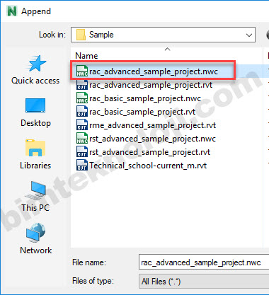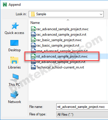 - Statik dosya olan, ‘rst_advanced_sample_project.nwc’ dosyasını ekleyelim.