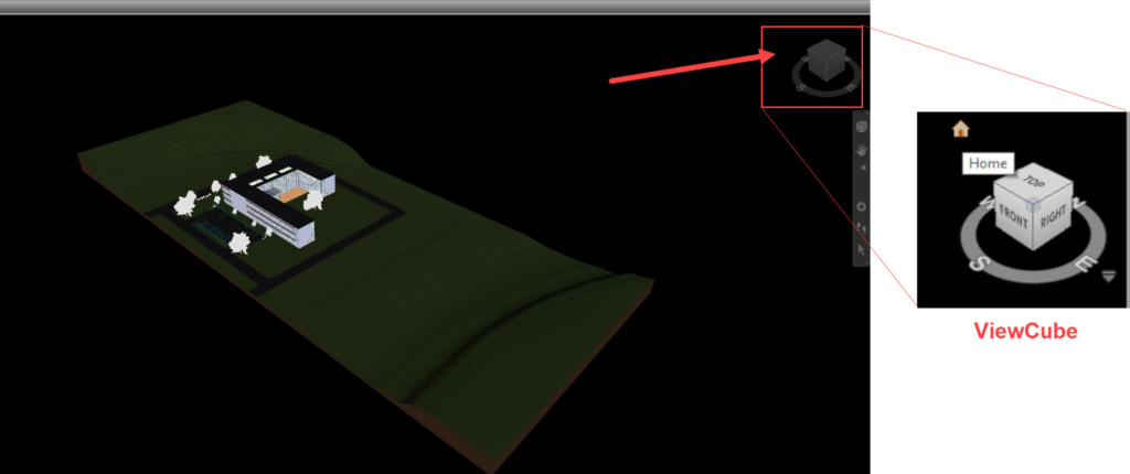 - ViewCube aracı ile, modeli farklı açılardan görüntüleyebilirsiniz. Klavyeden shift + Mouse roller tuşu na basarsanız, orbit tool aktif olarak, modeli döndürmenizi sağlayacaktır. Roller tuşu ile, yakınlaştırma-uzaklaştırma yapabilirsiniz. (zoom in/zoom out)