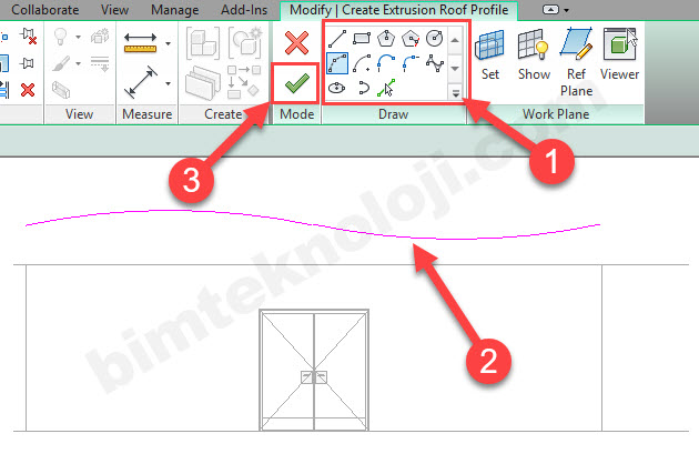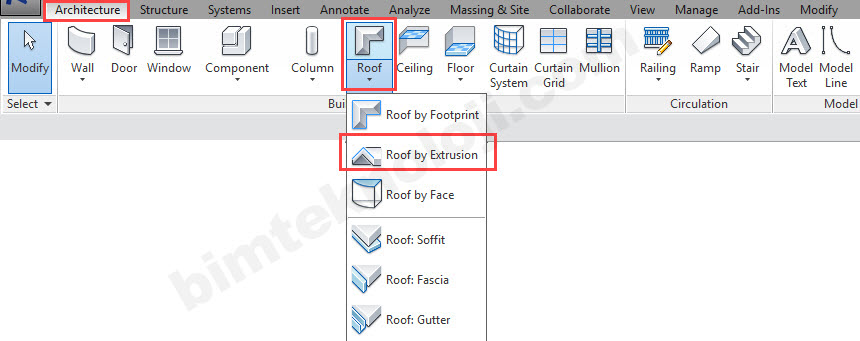 1. 1. Architecture sekmesinden Roof açılır menüsünden Roof by Extrusion komutu kullanılır.