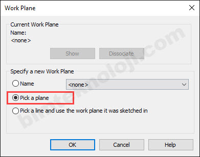 2. Work Plane iletişim penceresi açılır. Çalışma yapılacak düzlem belirtilir. ( Plan düzleminde, kesit seçeneği ile model oluşturulamayacağı için, kesit /cephe düzleminin seçilmesi istenir. )