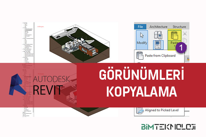 Kopyalanacak olan diğer dosyaya da herhangi bir 3D View görünümüne gelinir. Paste seçeneği ile çizime aktarılır. Aktarım estasında, Paste denildiğinde, hangi kata kopyalanacağı sorulacaktır. SectionBox ların bulunduğu kat seçilemediğinden, herhangi bir kat seçildiğinde işlem gerçekleşecektir. Kopyalanan görünüm, 3D grubuna eklenmiş olacaktır.