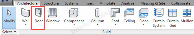 1. Revit’te kapı oluşturmak için Architecture sekmesinden Door komutu kullanılır.