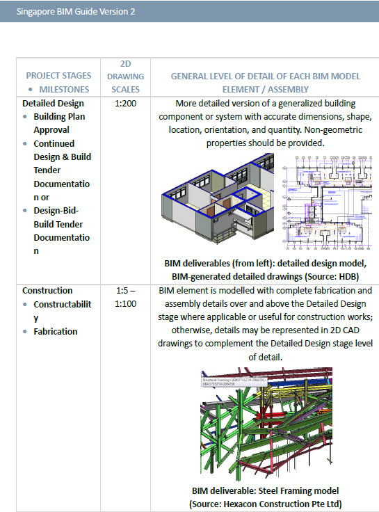 Singapur BIM Rehberi, 2012 yılından beri yayınlanmakta olup, son sürümü Ağustos 2015’e ait BIM kullanımlarında, paydaşların rollerini ve sorumluluklarını belirleyen bir rehberdir. LOD, BIM Sorumluluk Matrisler, Model İlerleme Matrisleri, İş akışları vb BIM konularında detaylı bilgiler içeren dokuman BIM uygulama planlarının geliştirilmesinde referans kaynak olarak kullanılmaktadır.