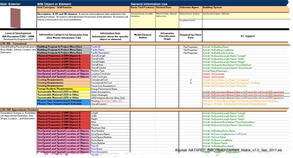 Model İlerleme Şartnameleri, Matrisleri ve LOD Standartları