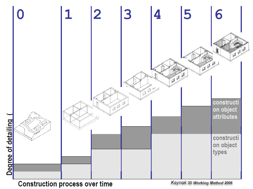 Danimarka, 2007 yılında, ‘“3D Working Method 2006” (Bips 2007).adıyla 0 dan 6 aya kadar artarak yükselen yedi aşamalı bir seviyelenme ilkesine göre bir doküman yayımladı.