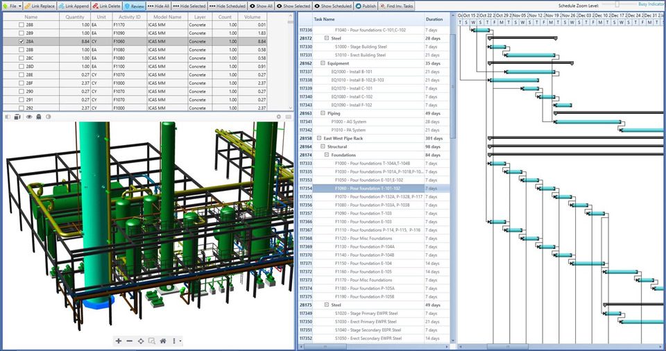İnşaat projeleri için önceden belirlenmiş zaman çizelgesine bağlı kalmak önemli bir rol oynar. BIM modeli, inşaatta yer alan tüm farklı ekipler için tek bir bakış açısı sunmaktadır. Böylece ekipler arasında koordinasyon ve işbirliğinin artması sağlanmış olur. Ayrıca çatışma tespitlerinden kaynaklanan gecikmeler, hammaddelerin yanlış tahmin edilmesi, verimsiz lojistik işlemlerinin önlenmesi de mümkün olur. Bina tasarımının detaylı bir şekilde görselleştirilmesi, projenin her bir aşaması için gereken tahmini sürenin hesaplanması ve bu çizelgeye uygun hareket edilmesini sağlar.
