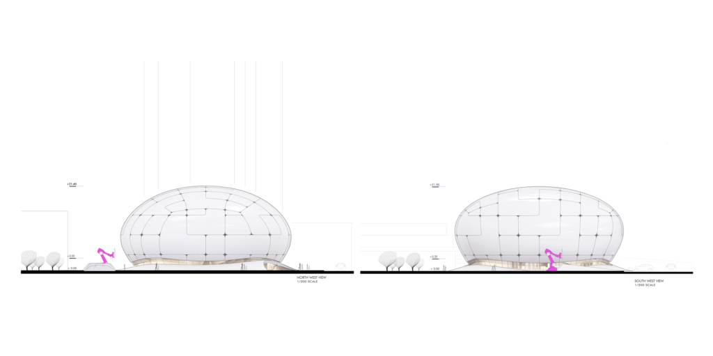 Tasarım yarışmasını kazanan Türk Mimarlık ofisi Melike Atınışık Architects tarafından tasarımı yapılan projede, çift kavisli beyaz giydirmeyi kurmak, şekillendirmek ve cilalamak için altı eksenli üretim robotlarının kullanımı öngörülmektedir. Müzenin, kavisli cephesinin monte işlemleri robotlar tarafından yapılacak.
