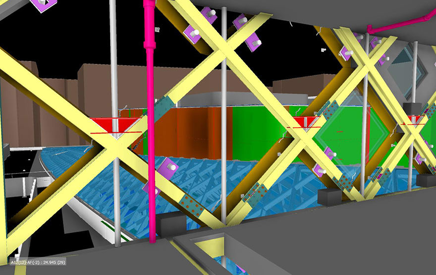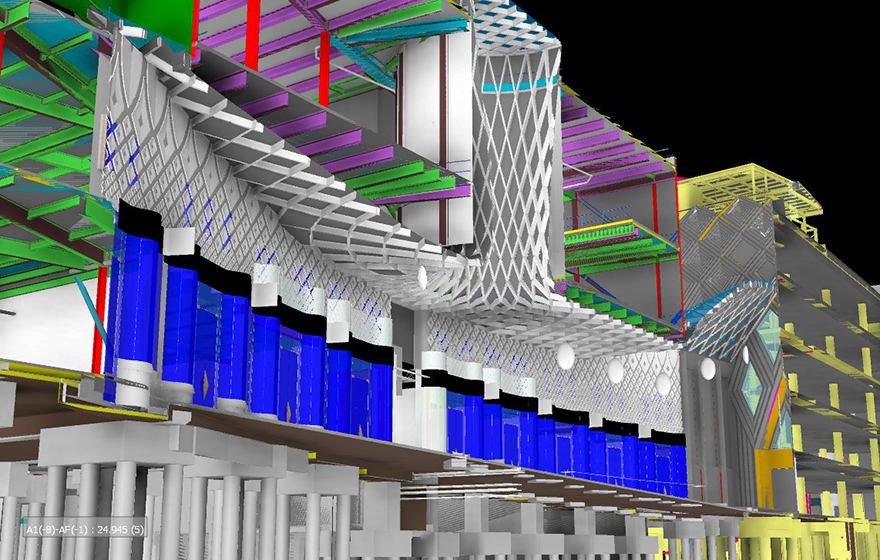 Proje sürecinde cephe, çelik konstrüksiyon ve MEP’in yanı sıra BIM Uygulama Planı gibi standartların yönetilmesinden, ayrıca Navisworks’teki müşterek BIM modelinin koordinasyonundan Space Group’un bir parçası olan BIM Technologies sorumluydu.