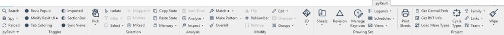 Pafta ayarları, Pafta revizyonları, Baskı ayarları, Modele eklenmiş dosyaları görme, CSV formatlı tablo alma ve aktarma, Pattern tanımlama, yeniden numaralandırma özellikleri ve daha pek çok çalışmaları hızlandırıcı ve kolaylaştırıcı komutlar içeren pyRevit, mutlaka incelemeniz gereken eklentilerden biridir.