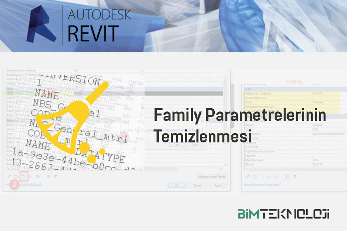 Revit aracının temel yapı taşları family lerdir. Family dosyalarının özellikleri, model kalitesini belirlemede önemli rol oynar. Üretici firmalar, ürünlerinin özelliklerine göre family modellerini oluşturup, çeşitli kaynaklardan paylaşmaktadırlar. Kullanıcılar ise, bu modelleri alıp, kendi proje sistemlerine göre değiştirerek kullanmaktadırlar. Dolaysıyla her family için, yapılması gereken çok sayıda işlem çıkmaktadır. Bu işlemlerden birisi, fazla olan parametrelerin temizlenme işidir.